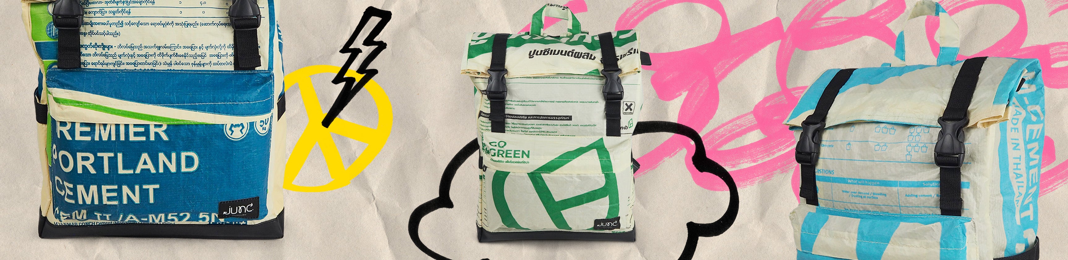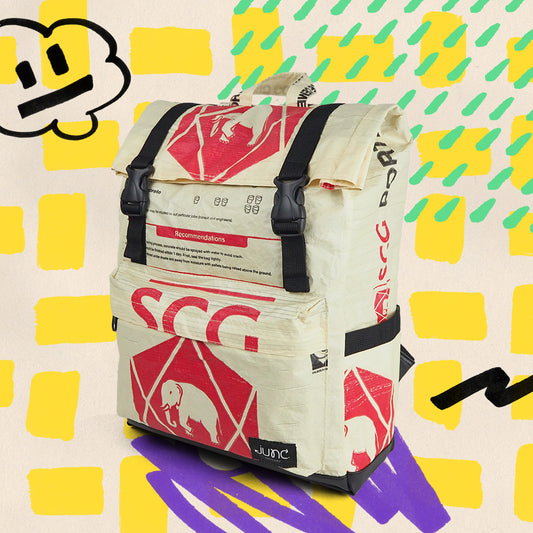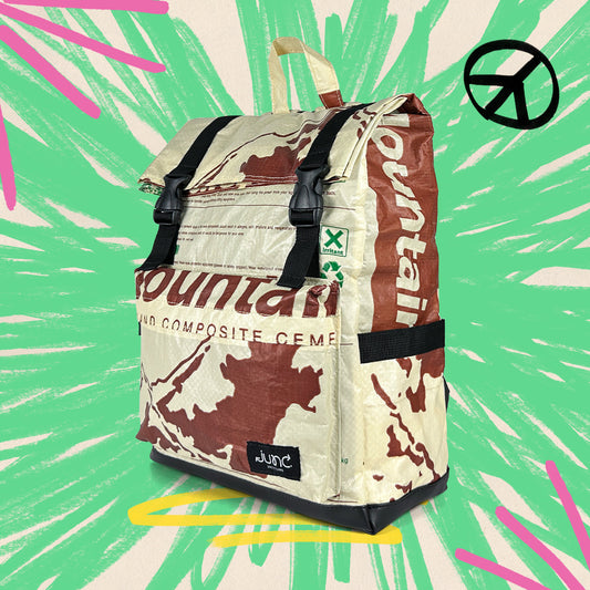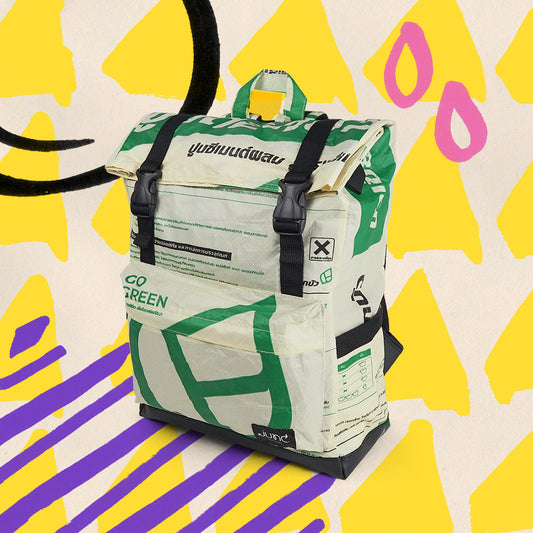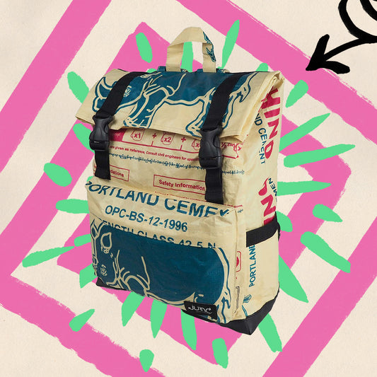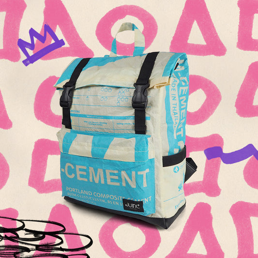 Der Minnie Daypack ist die perfekte Kombination aus Stil, Nachhaltigkeit und Funktionalität. Hergestellt aus einer einzigartigen Mischung aus upcycelten Zementsäcken und Polyester, ist dieser Rucksack ultra langlebig und strapazierfähig. Dank der verwendeten Zementsäcke aus PP-Gewebe, die in Ländern wie Thailand, Indonesien und Kambodscha für Zementsäcke genutzt werden sind die Rucksäcke leicht, strapazierfähig, feuchtigkeitsresistent und sehr robust.