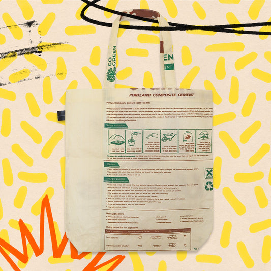 Unsere einzigartige Upcycling Tote-Bag ist aus recycelten Zementsäcken gefertigt und bringt so einen Hauch von Rohmaterial und Industrie-Charme in deinen Alltag. Die Tasche besticht durch ihre robuste Struktur und Langlebigkeit – gemacht, um alles zu tragen, was du brauchst, und dabei standhaft zu bleiben, dank des extra breiten Bodens.