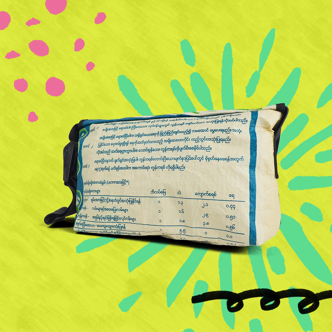 Die Säcke aus denen wir die Rucksäcke upcylen bestehen aus PP-Gewebesäcken, die in Südostasien für Zementsäcke/ Futtersäcke genutzt werden. Die Säcke sind leicht, strapazierfähig, feuchtigkeitsresistent und sehr robust, was sie ideal für das Verpacken von schwerem Zement macht. Die gewebte Struktur verleiht zusätzliche Festigkeit, so dass die Säcke problemlos für bis zu 50KG genutzt werden. Perfekt also für eine kleine Tasche!