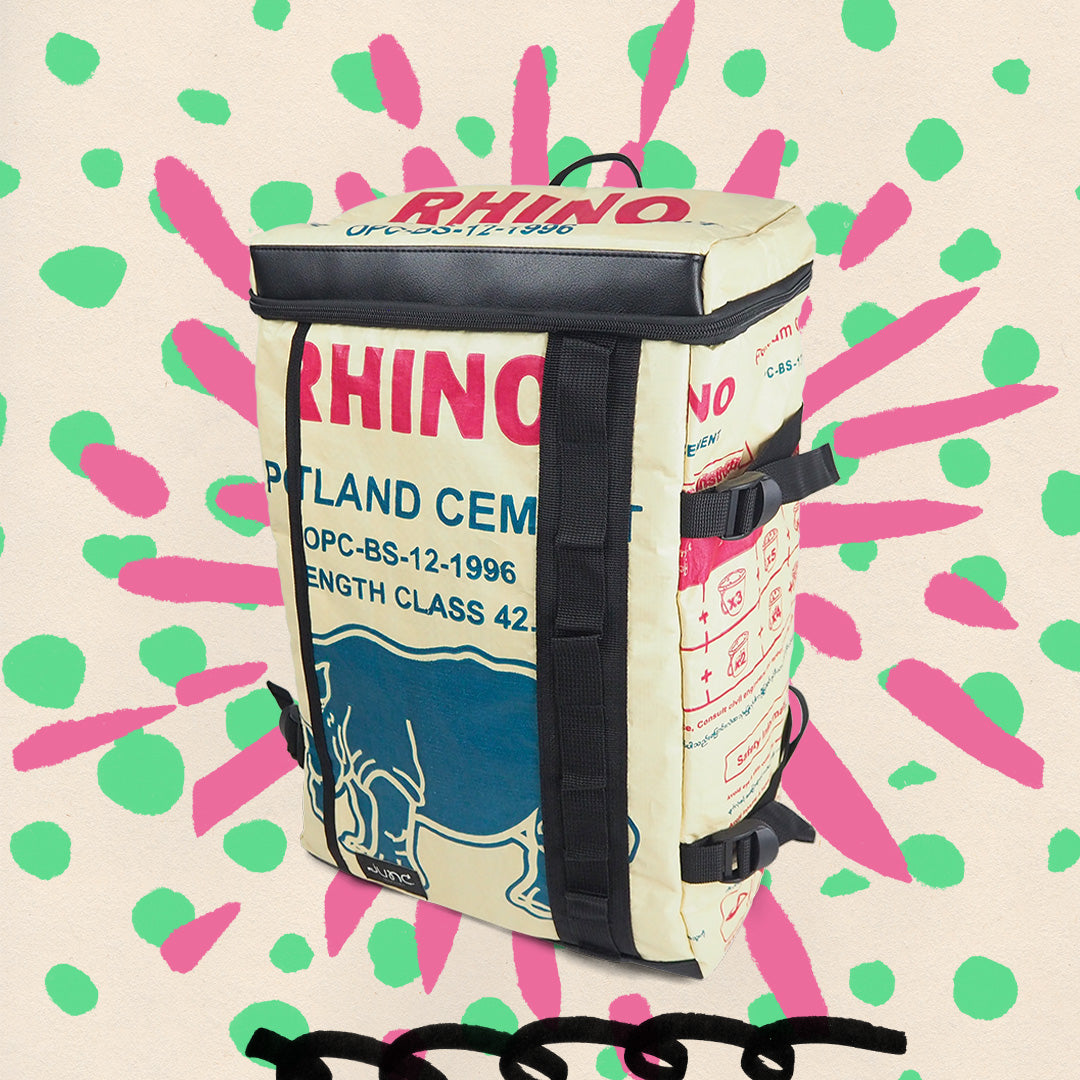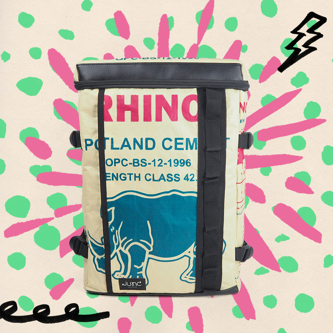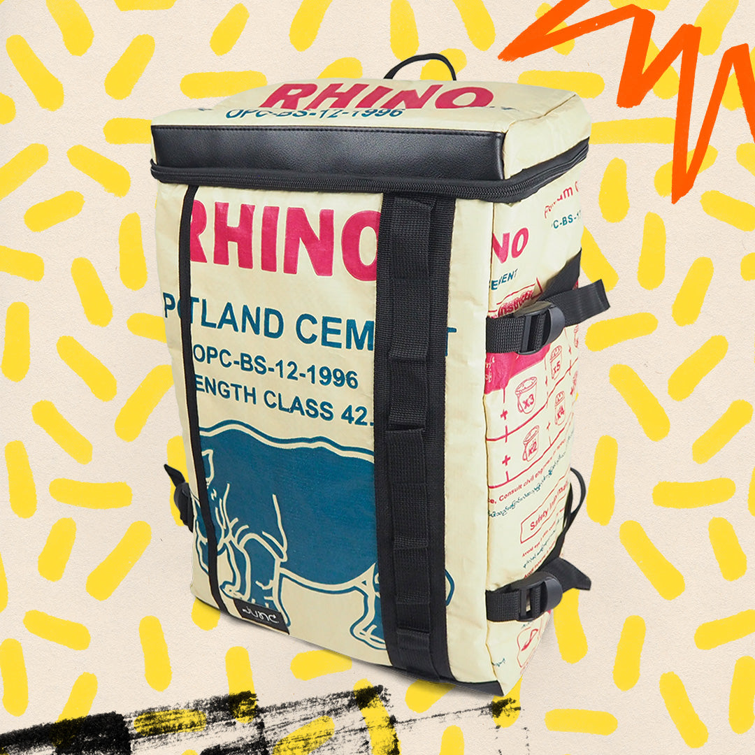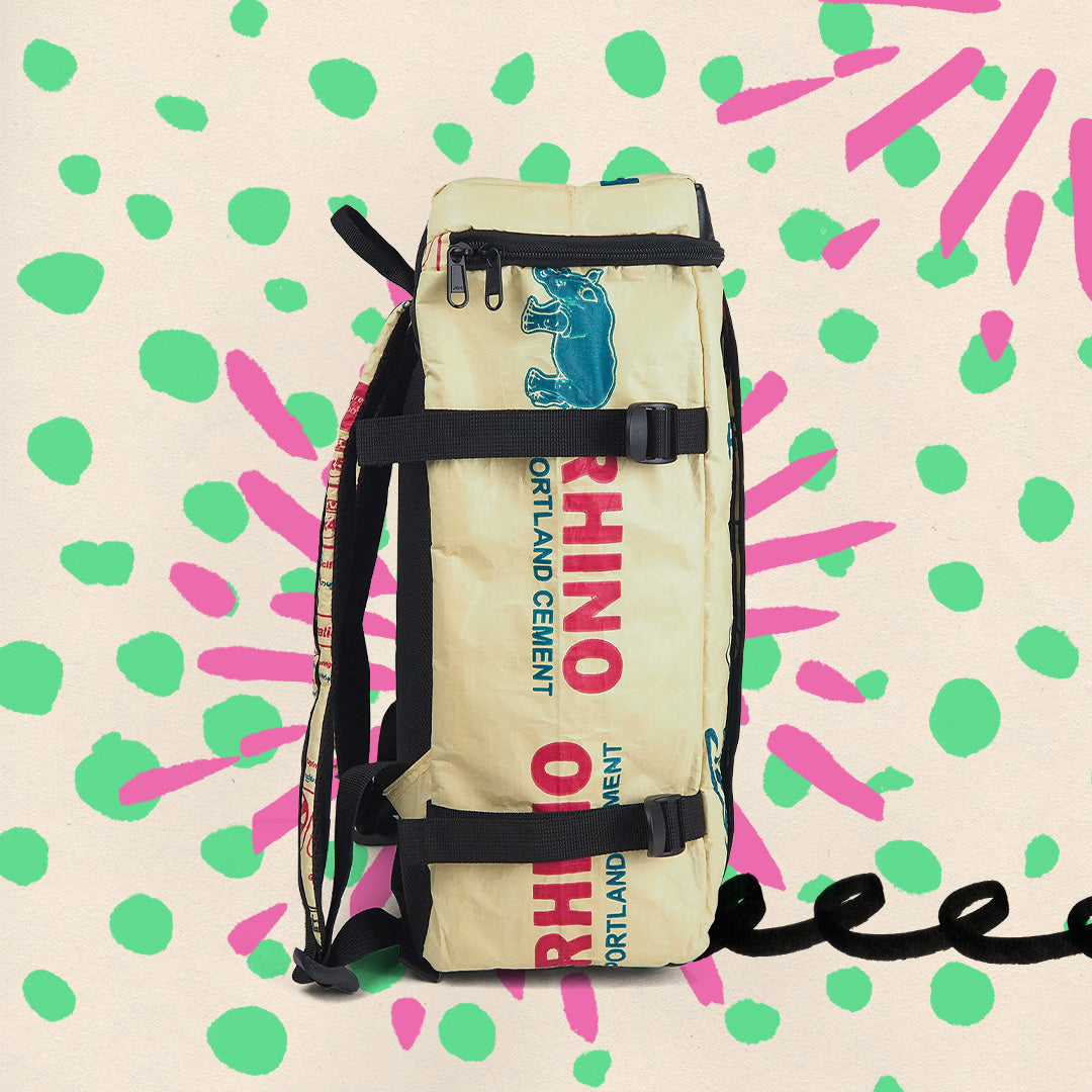 Die Zementsäcke, aus denen wir die Rucksäcke upcyclen, bestehen aus PP-Gewebesäcken, die in Südostasien für Zementsäcke genutzt werden. Die Säcke sind leicht, strapazierfähig, feuchtigkeitsresistent und sehr robust, was sie ideal für das Verpacken von schwerem Zement macht. Die gewebte Struktur verleiht zusätzliche Festigkeit, sodass die Zementsäcke problemlos für bis zu 50KG genutzt werden. Perfekt also für einen Rucksack!