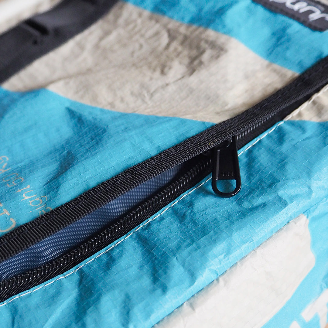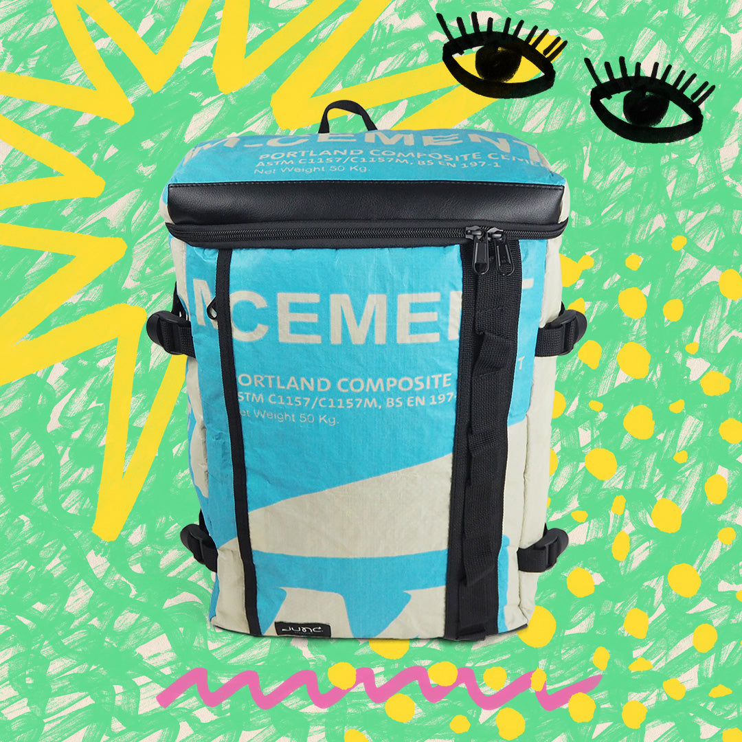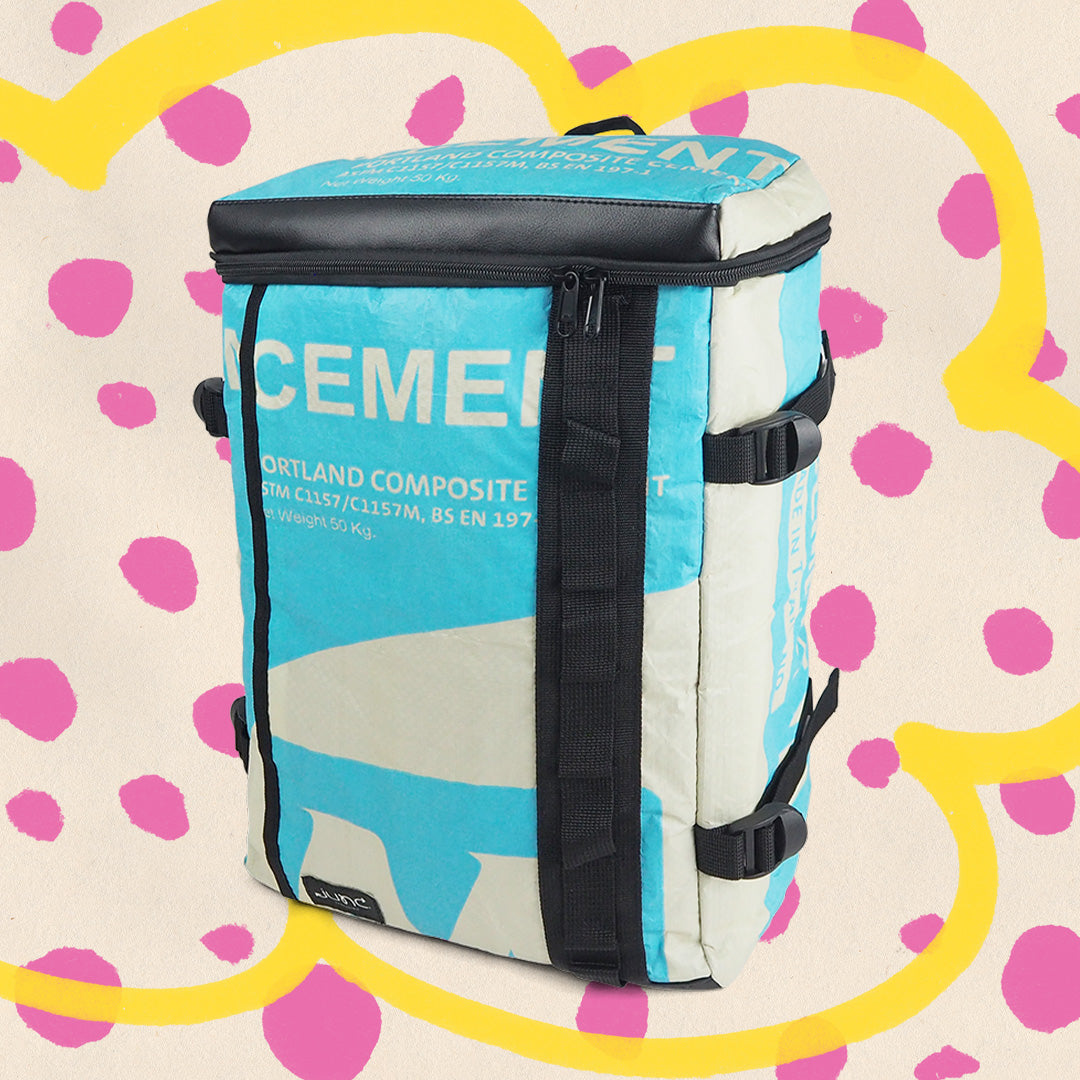 Die Zementsäcke, aus denen wir die Rucksäcke upcyclen, bestehen aus PP-Gewebesäcken, die in Südostasien für Zementsäcke genutzt werden. Die Säcke sind leicht, strapazierfähig, feuchtigkeitsresistent und sehr robust, was sie ideal für das Verpacken von schwerem Zement macht. Die gewebte Struktur verleiht zusätzliche Festigkeit, sodass die Zementsäcke problemlos für bis zu 50KG genutzt werden. Perfekt also für einen Rucksack!