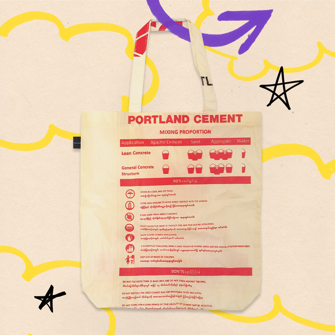 Die Zementsäcke aus denen wir die Rucksäcke upcylen bestehen aus PP-Gewebesäcken, die in Südostasien für Zementsäcke genutzt werden. Die Säcke sind leicht, strapazierfähig, feuchtigkeitsresistent und sehr robust, was sie ideal für das Verpacken von schwerem Zement macht.